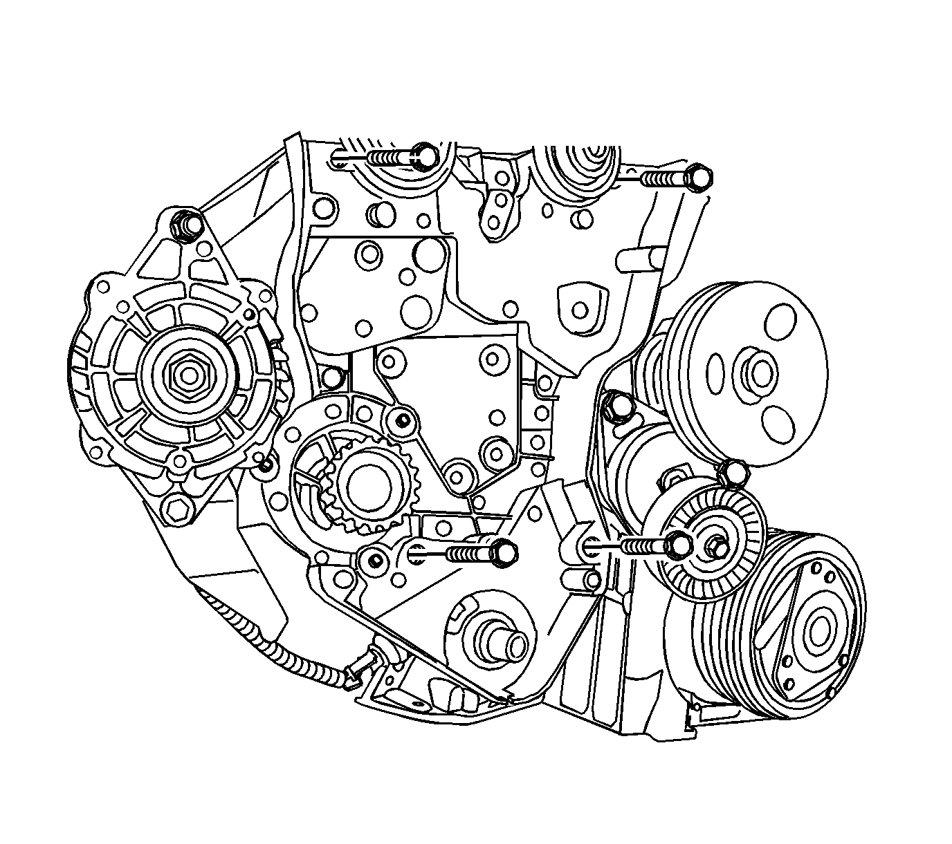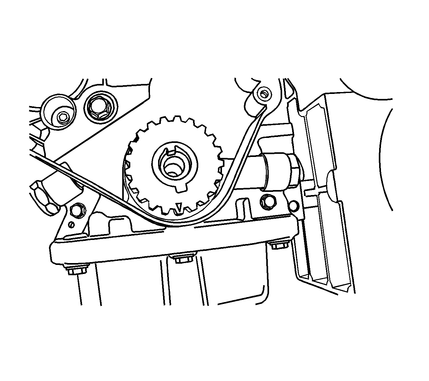 48. Remove the cover bolts from the lower front timing belt.