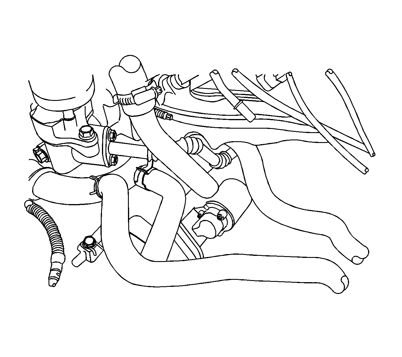 32. Connect the throttle body coolant hose to the thermostat housing.