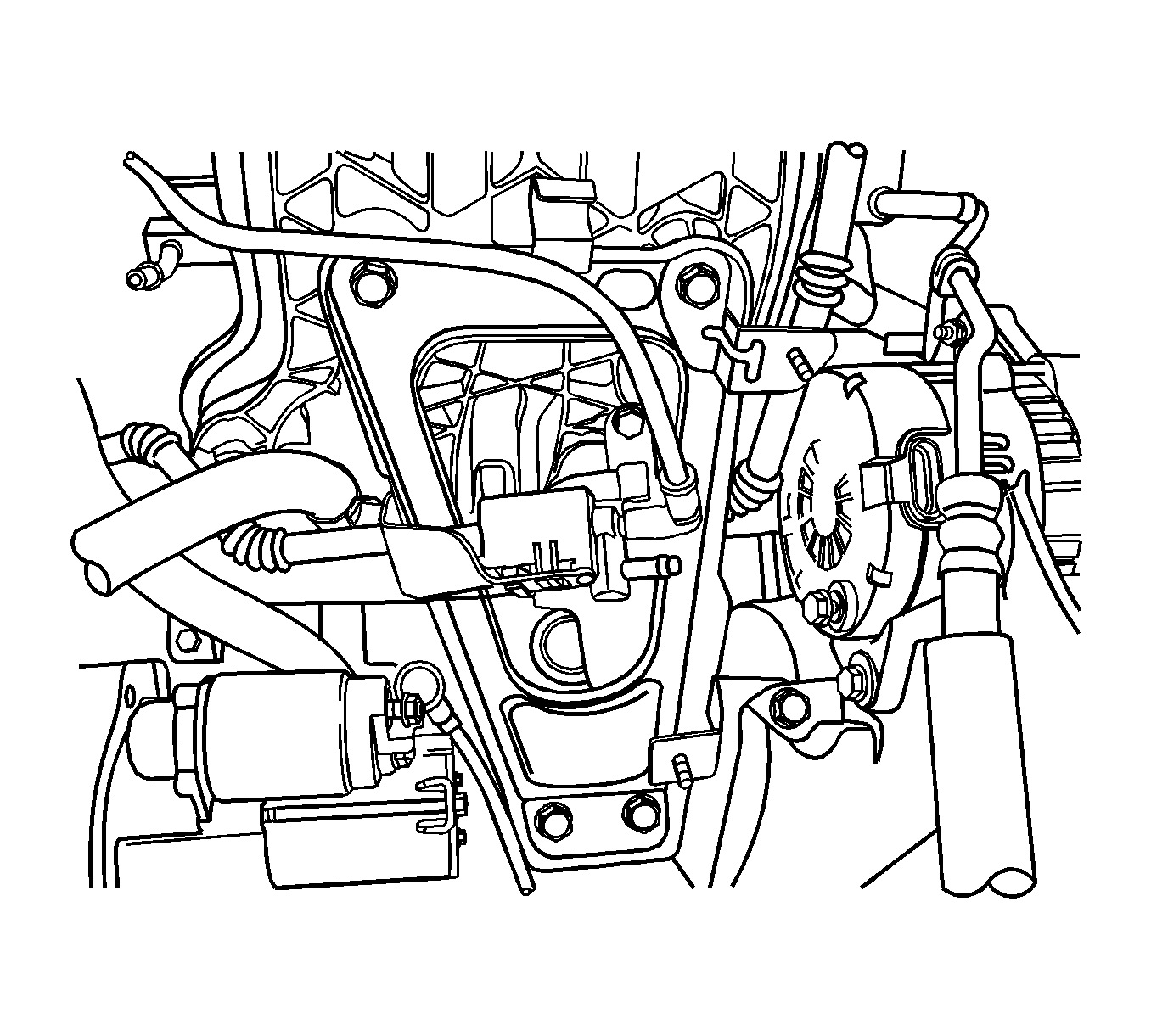 35. Remove the canister purge solenoid valve at the intake manifold support bracket.