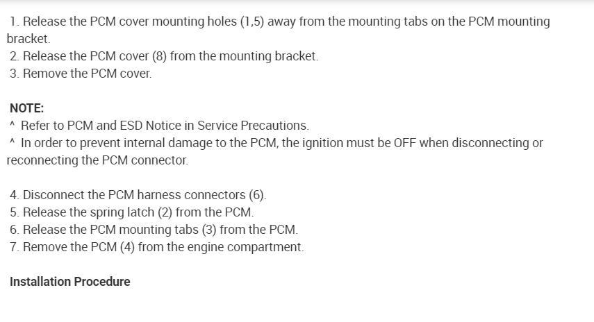 I have included the information that you requested in the diagrams down below as well as removal and installation instructions for the Power-train Control Module (PCM) AKA, "computer" removal and installation. Please get back to us with how it goes, and please feel free to ask any more automotive questions that you may have. It's what we are here for.