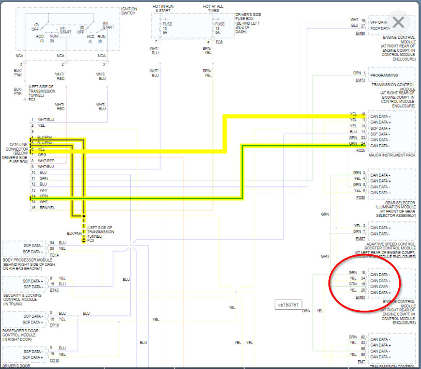 So just to be sure I was clear, you want to measure the voltage on any of the wires on that diagram that are labeled CAN data + or -.