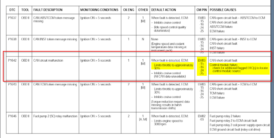 I would go no further then the P1642, I attached the info below for it, where it states the CAN circuit is shorted or the control module is the issue. Due to the other PCM faults that would be the module effected but clearly that doesn't appear to be the issue.