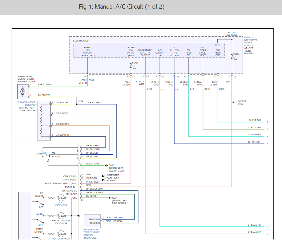 I will attach a wire diagram for you to view. check for voltage to the motor to be sure it is not a bad motor. The control is the module looks for input from the AC system from the pressure switch. When it sees pressure above 20 lbs, it will turn on the fan.