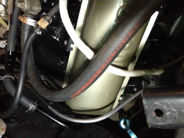 If I remember, the check valve & line were strapped to the under side of the fender brace with I have off in the pic.