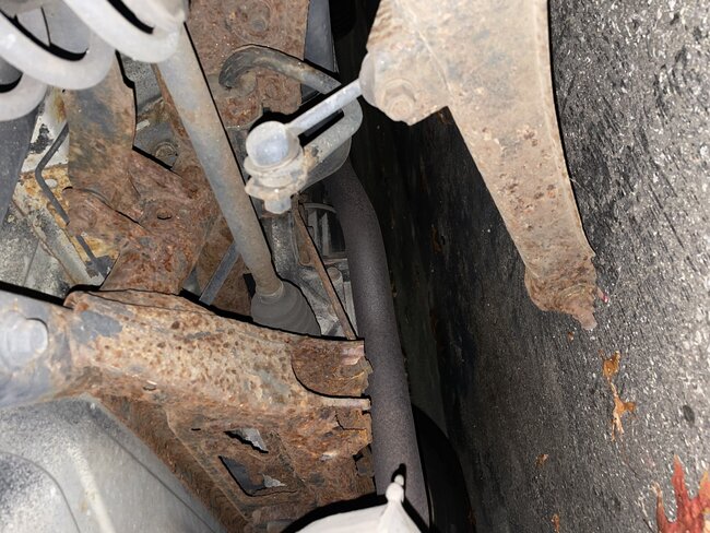 Due to the cost of these parts, it is very common for the people at repair shops to order these parts from a salvage yard. Parts can be shipped from yards in the south where they don't see rust like this. The vehicle will also need an alignment after the parts are replaced. The only thing we do now is a four-wheel alignment because all alignment computers require projectors or mirrors to be attached to all four wheels to work, but they may list a two-wheel alignment on the bill. All that means is you still get all angles on all four wheels measured, but adjustments that are needed are only done on the front wheels.