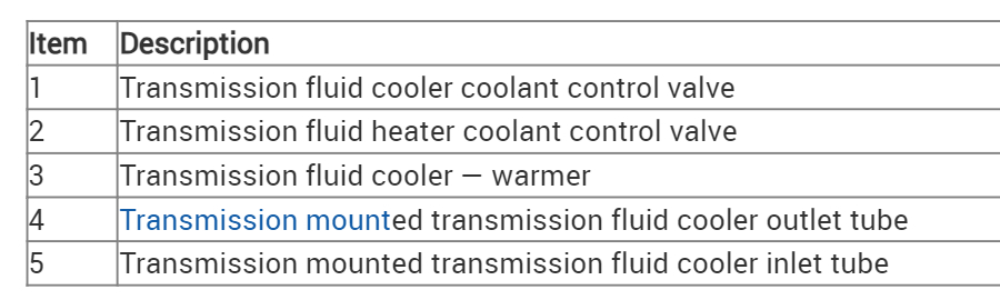 First, here is an overview of the system. These vehicles are equipped with a transmission fluid cooler/warmer assembly. The transmission fluid cooler/warmer maintains the transmission fluid at operating temperature. When the transmission fluid is below operating temperature the transmission fluid heater coolant control valve will direct heated engine coolant to the transmission fluid cooler/warmer to heat the transmission fluid to operating temperature in an optimal amount of time. When the transmission fluid rises above the operating temperature the transmission fluid cooler coolant control valve will direct cooled engine coolant to the transmission fluid cooler/warmer to reduce the transmission fluid temperature to normal operating temperature.