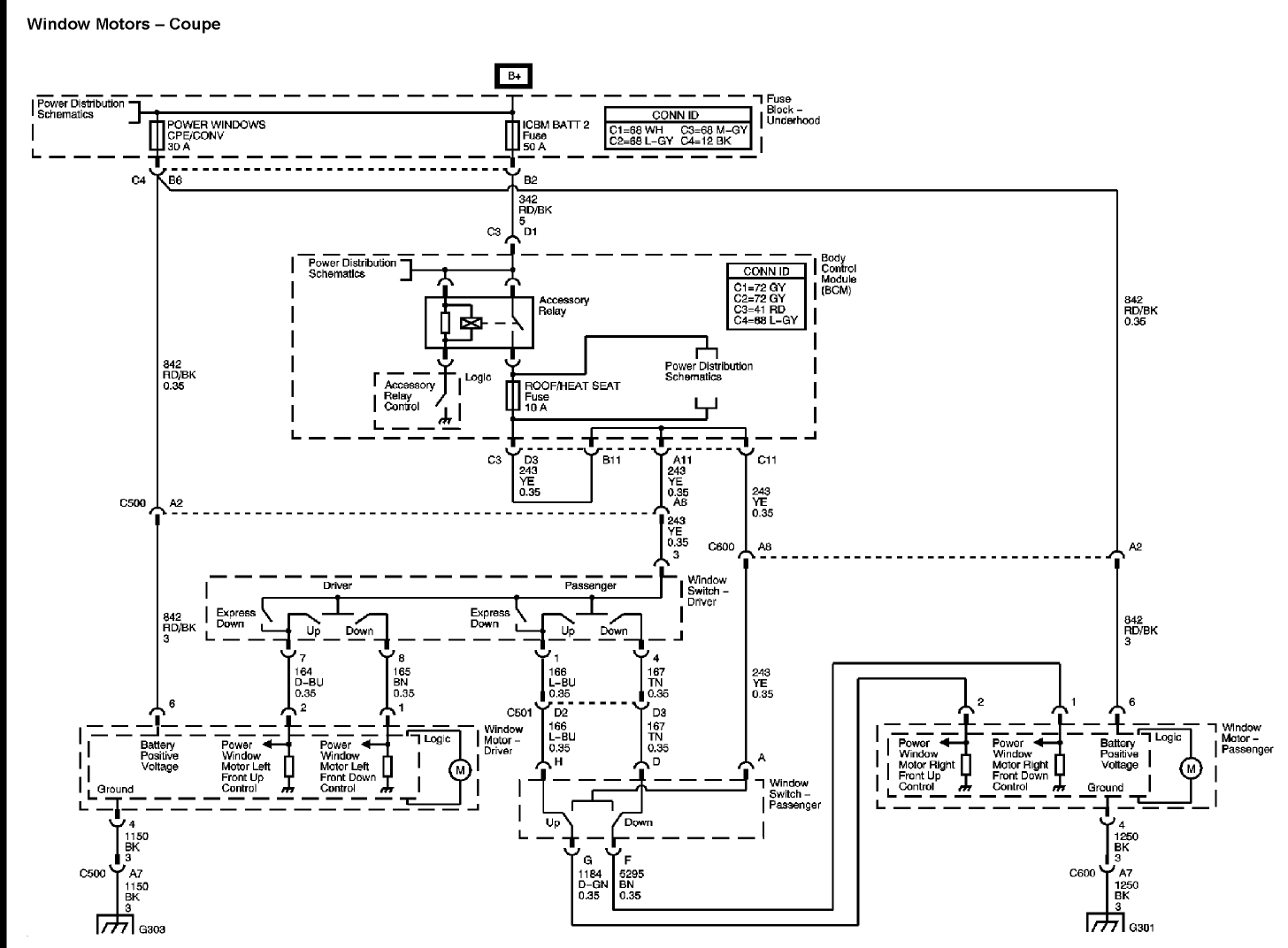 I have the car listed above GT convertible. Started out with windows stop going down with the door switch, but would go down automatically while putting the convertible top down. Was fishing around with it, checking fuses, both good, and during this, the auto up/down feature when you open the door stopped working. There is no way to reset it, since the switch is not working. Tried getting the windows to go back to position by putting the convertible top down and back up, and now the door windows are both stuck in the down position. Both rear windows will still go up and down with the convertible top. Replaced the main power window switch in the driver side door, with no results. None of the windows can be controlled by the switch, only the back will go up and down with the convertible top. Got out a multi-meter to verify that the switch in the drivers door is getting power, and it is. All buttons in the switch are functioning as they should per the multi meter. Any suggestions where to go next?