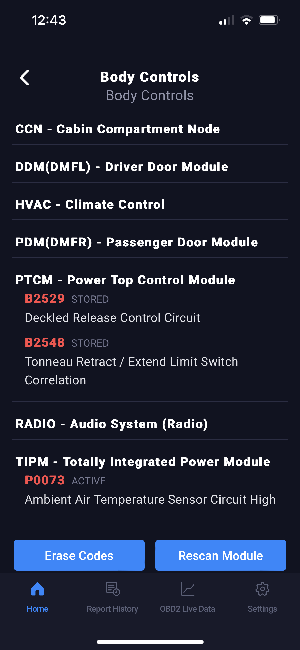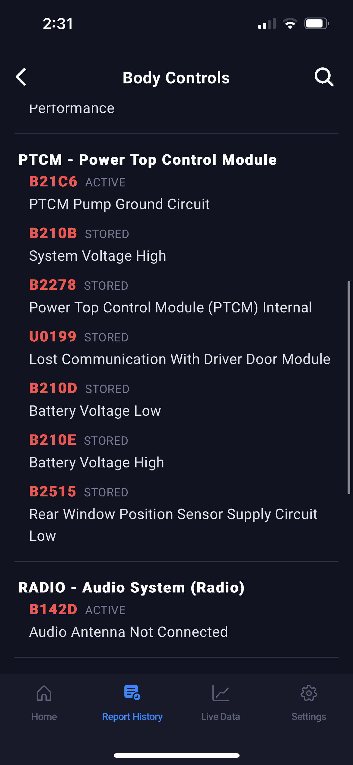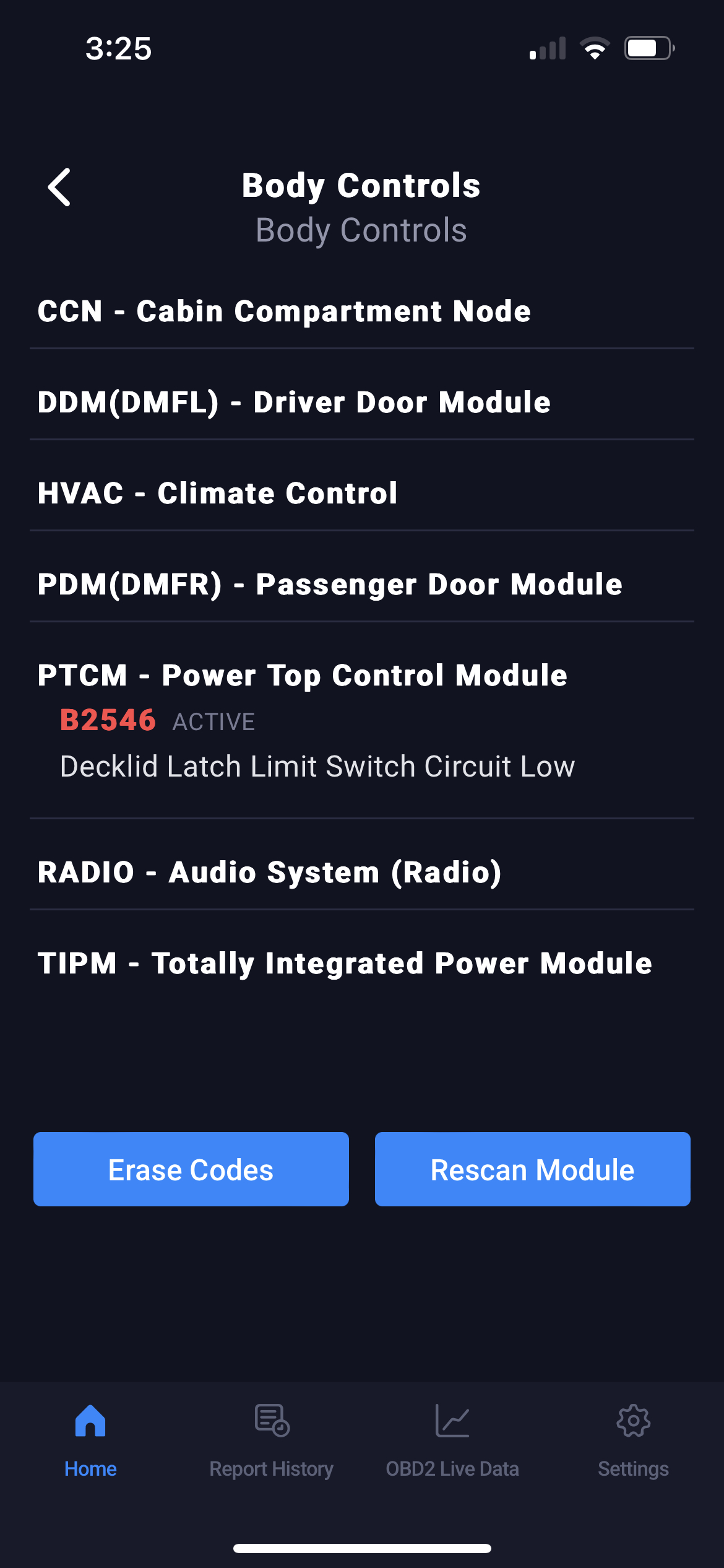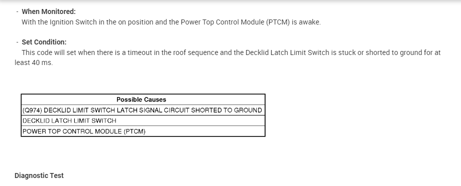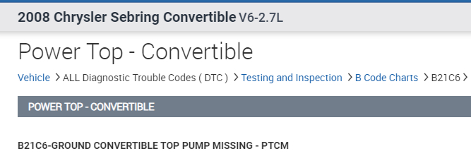 The top in my car listed above won't work and is saying convertible top malfunction when i press the button. The trunk button also doesn’t work (I'm not sure if that is connected to the problem). I used an obd2 scanner to read the codes on the PTCM but i am not sure what the issue could mean. I’ll put the screenshot below. Does anyone know what could be the issue?