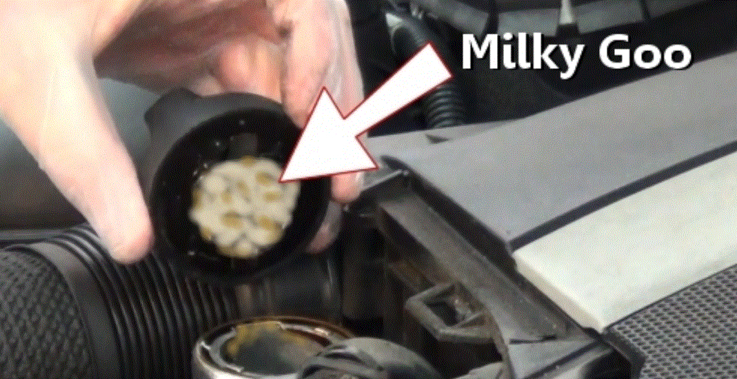 When coolant and motor oil mix, it creates something like you described. Take a look at pic 1 below. That is an oil cap showing what the oil looks like when contamination exists. Is that what you are seeing? Also, could you take a pic and upload it for me to see?