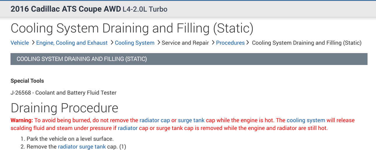 I just purchased this ATS. I want to replace the coolant. Would you please explain to me the proper steps in draining and replacing the coolant on this vehicle. I have previously obtained information from regarding changing the coolant on my Cruze, as it was the first closed/pressurized system I did and appreciated the information to prevent air bubbles from forming in the coolant system. Thank you in advance for your expert advice.