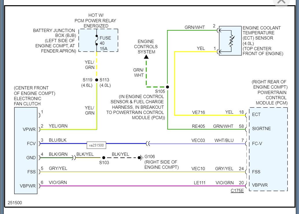 Because of this we need to check the voltage on each of the 4 wires going to the fan when the engine is on, and the fan is turned off.
