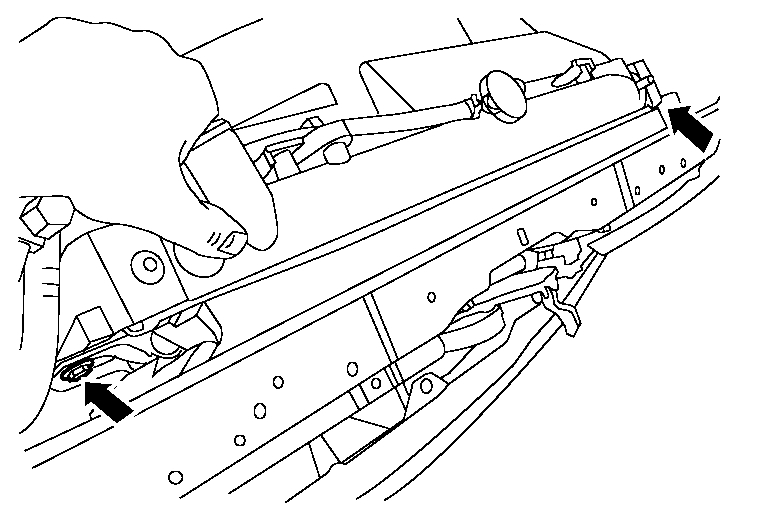 CAUTION: Do not damage or scratch A/C condenser and radiator core when removing.