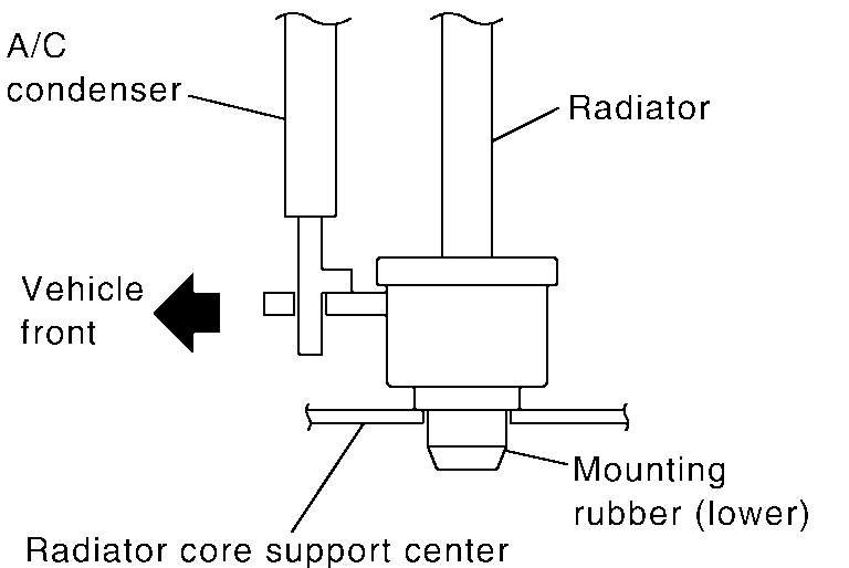 CAUTION: Because A/C condenser is onto the front-lower portion of radiator, moving to rear direction should be at minimum.