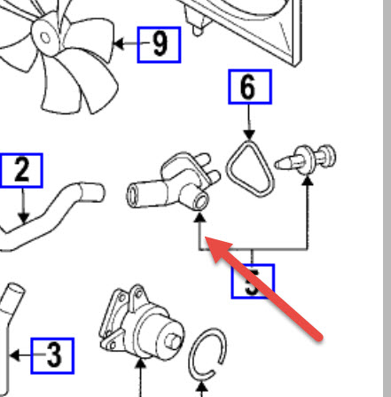 On the top right side of the engine where the lower hose from the radiator connects to a black plastic box with many other connected hoses is where the coolant comes out when I try to fill the radiator with coolant. please help, thanks.