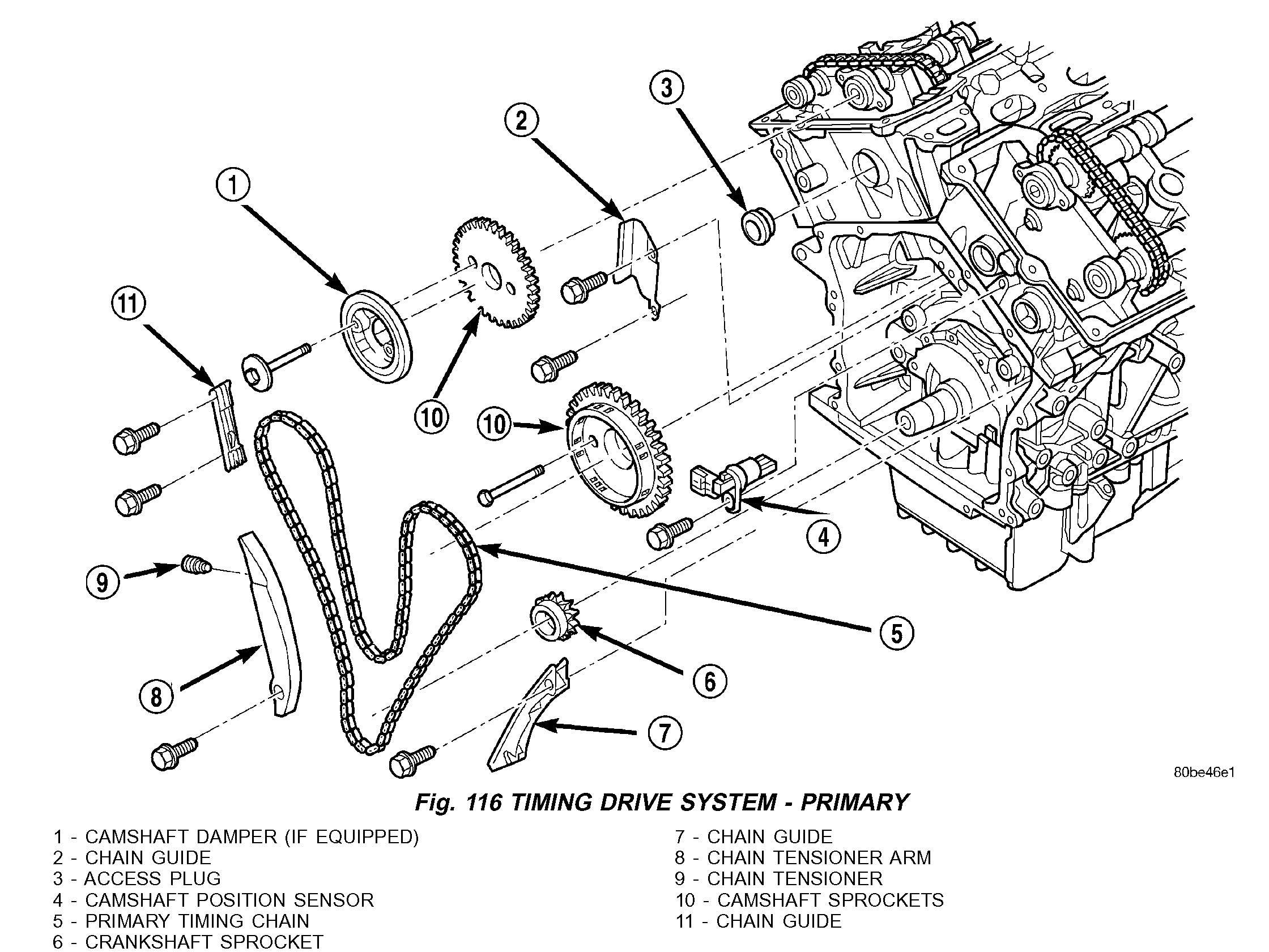12. Remove lower chain guide and tensioner arm (Fig. 116).