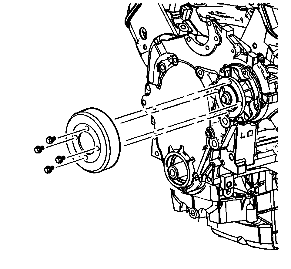 1. Remove the water pump pulley bolts.