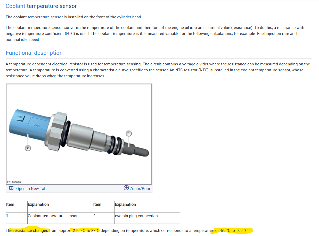 L4-2.0L Turbo (N20), I'm not sure if that's the correct model, but coolant sensors basically all work in the same way, either an open ground or open sensor will set a circuit high code.
