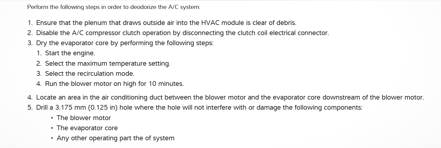 don't worry about the ac, check to see if drain is plugged by running a wire through the bottom of thedrain hose under car it will be by firewall in center you can also check for debris in front of windshield and turn blower on shoot something like febreze into screen in pic with blower on high or follow the directions in the other two pics