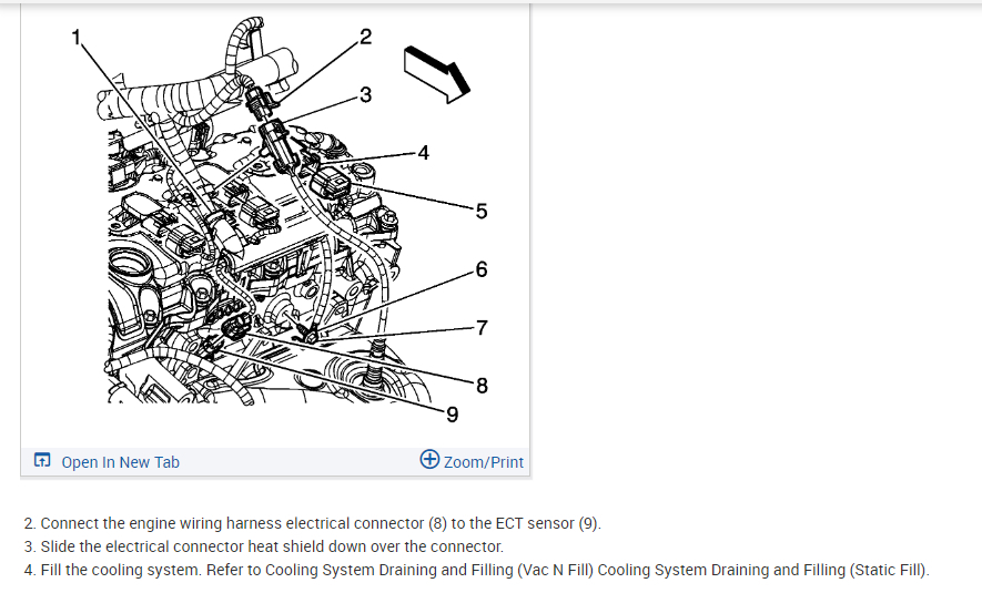 It's on the front side of the engine, in the notched area of the exhaust manifold next to the alternator. Drain the cooling system (or rig up a way to keep it under vacuum) remove the old sensor, install the new one and tighten to 16 ft lb. Refill the system.