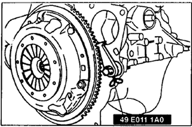 1. Hold the flywheel (MTX) or drive plate (ATX) by using the SST.