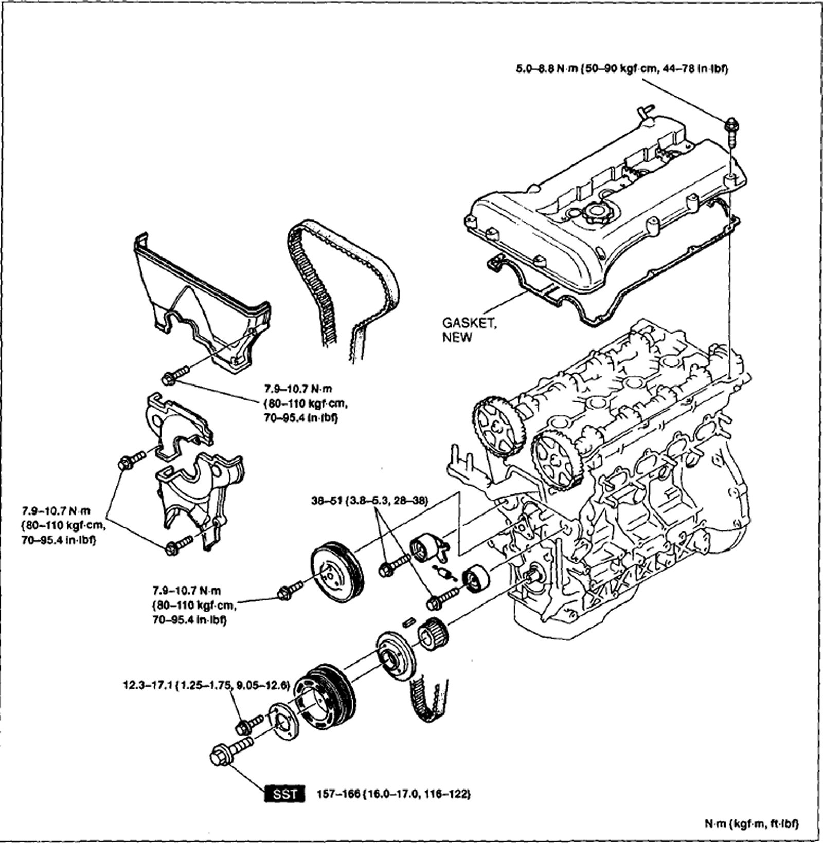 38-01 Nm [3.8-O.3 kgf-m, 28-38 ft-lbf]
