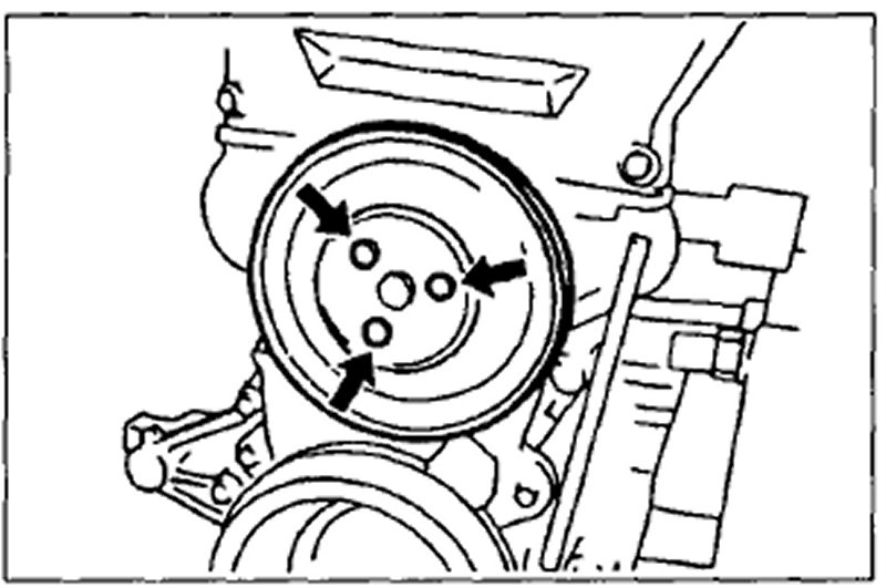 Install the water pump pulley and tighten the bolts.