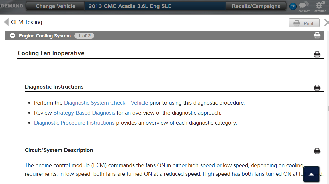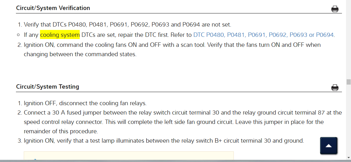 In the diagrams down below I have included the factory GMC diagnostic troubleshooting guide for your vehicle's cooling fans not operating. Please go through this guide and get back to us with what you are able to find out.