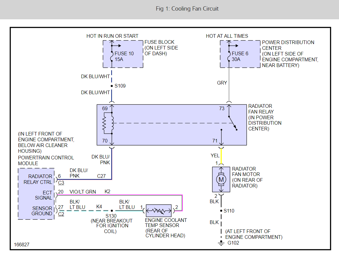 Thanks, I did, also the temperature gauge is reading correctly if that makes a difference. Tomorrow after the snow is over I am going to search through the two sides of the relay again for a short to ground just to be sure I have not missed it. I tried a second computer that was a known good one and it shows p0481, too. Last night I worked all the way back through the wires in connector C104 in the lower left of the dash for the switches.