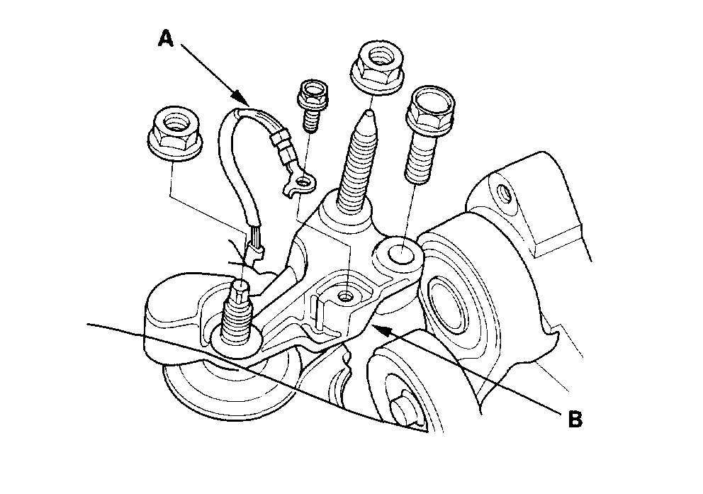 10. Remove the ground cable (A), and remove the upper bracket (B).