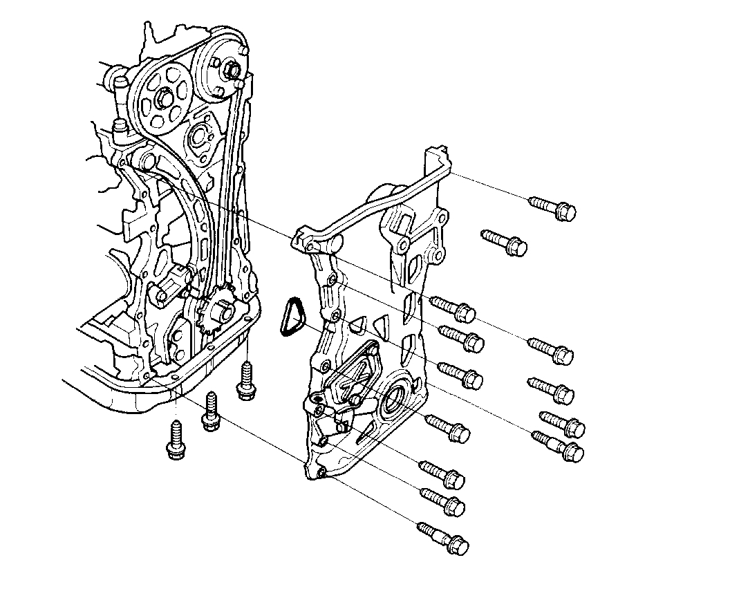 10. Remove old liquid gasket from the chain case mating surfaces, bolts, and bolt holes.