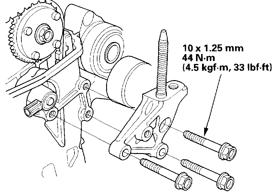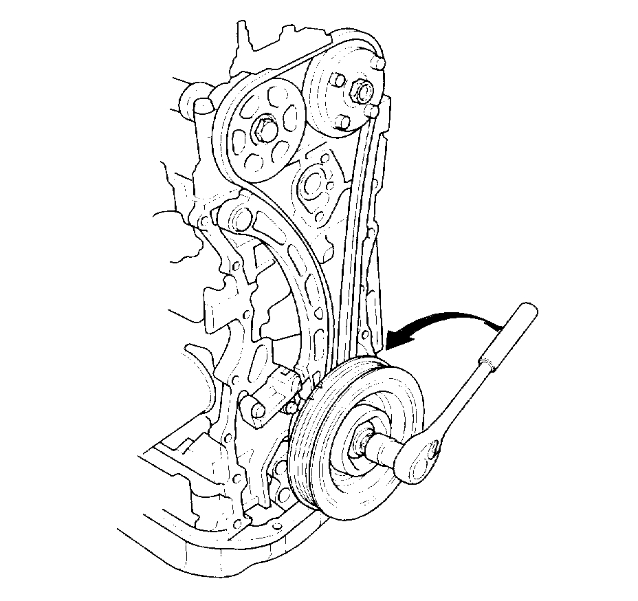 14. Turn the crankshaft counterclockwise to compress the auto-tensioner.