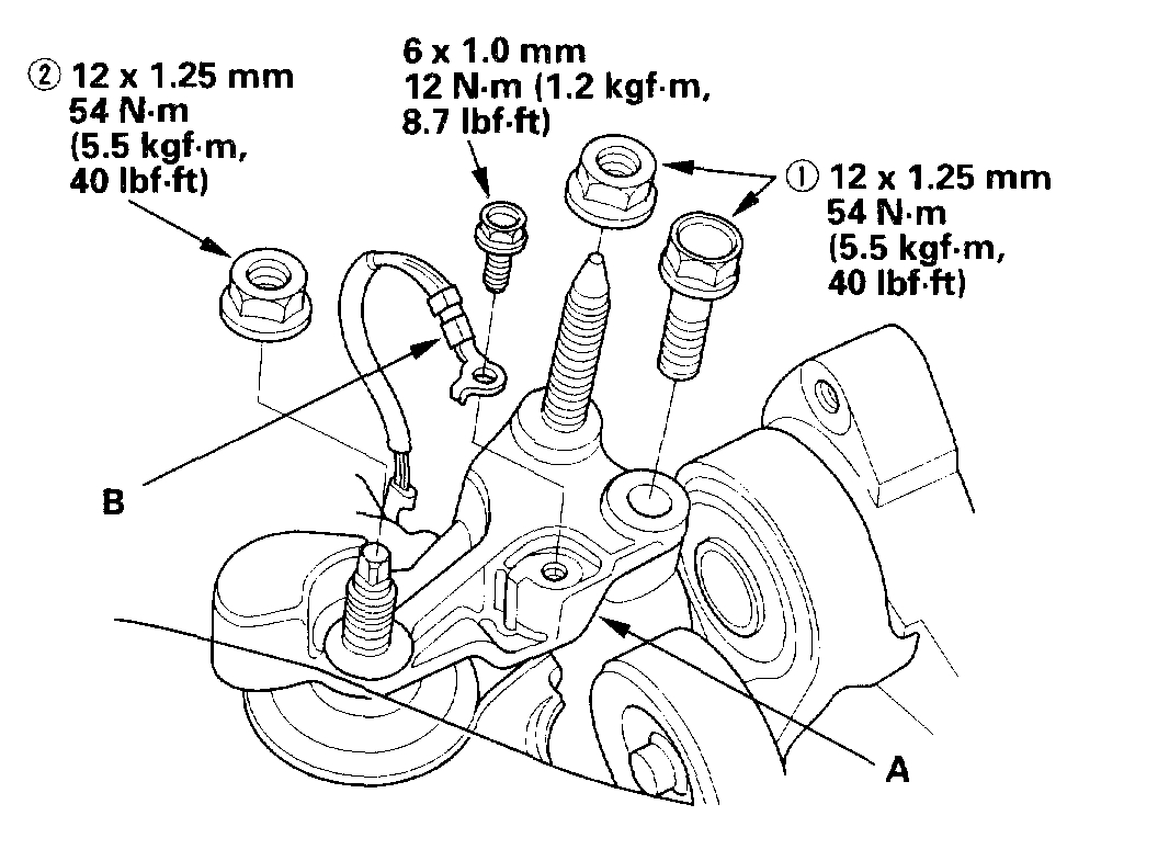 17. Install the upper bracket (A), then tighten the bolt/nuts in the numbered sequence shown.