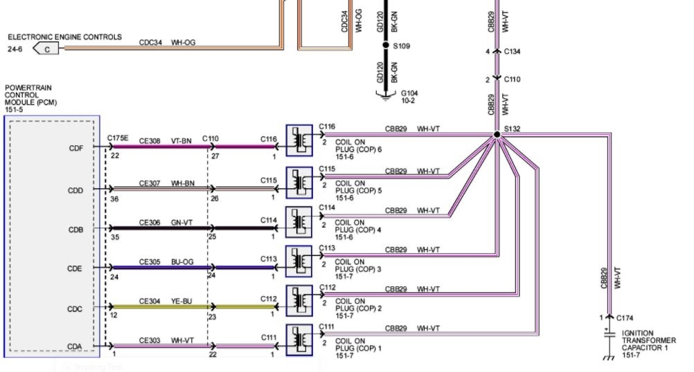 Hi, I had A P0302 code so i have been trying to check it. i have replaced the COP and that did not fix the issue. so then i went into it deeper it seem to have plus twelve volts at the plug and coming from the center plug on the PCM, but i cannot find the ground. i put a test light between the ground at the COP and plus twelve volts battery it when it is supposed to fire it is extremely dim compared to the other working COP. can you please tell me where to locate the ground so i can check for a bad wire?