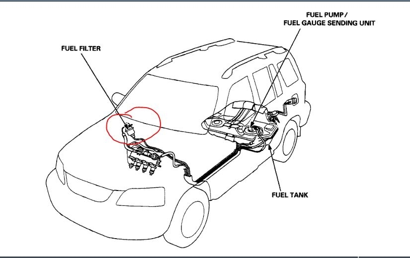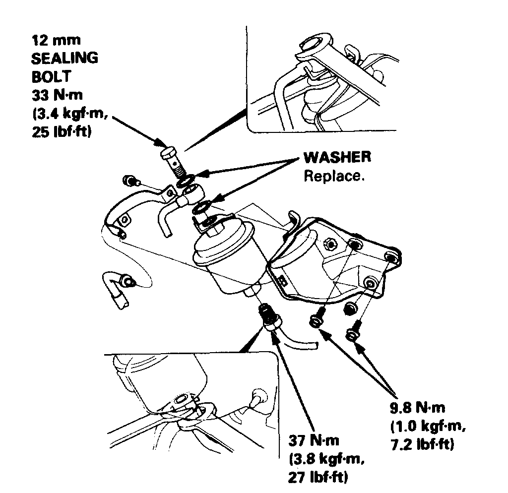 The fuel filter should be replaced whenever the fuel pressure drops below 270 - 320 kPa (2.8 - 3.2 kg/Sq.cm, 40 - 47 psi) with the fuel pressure regulator vacuum hose disconnected and pinched] after making sure that the fuel pump and the fuel pressure regulator are OK.