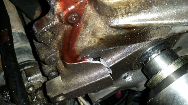 The driver side axle pop out had it changed drove the car with no problems then came back to car and notice transmission oil leaking call mechanic he said need to put axle shaft seal on but went to put it on today now tells me my transmission is crack I'm really puzzle how he didn't see this when changing the axle the first time can you explain how the crack happen its right at the bottom corner under where the axle goes into the transmission