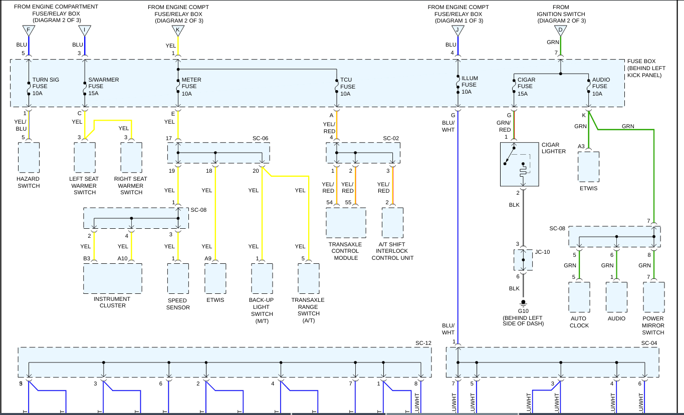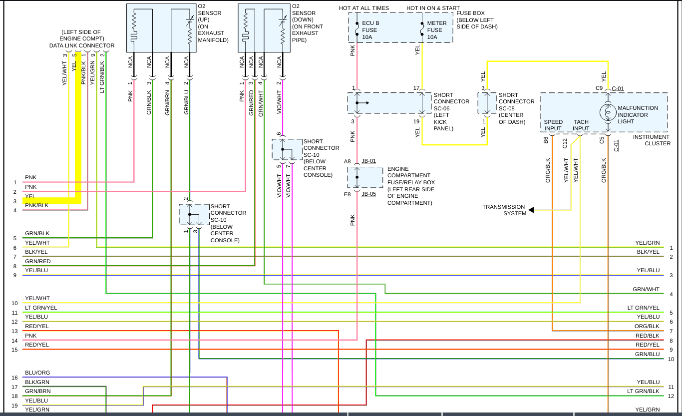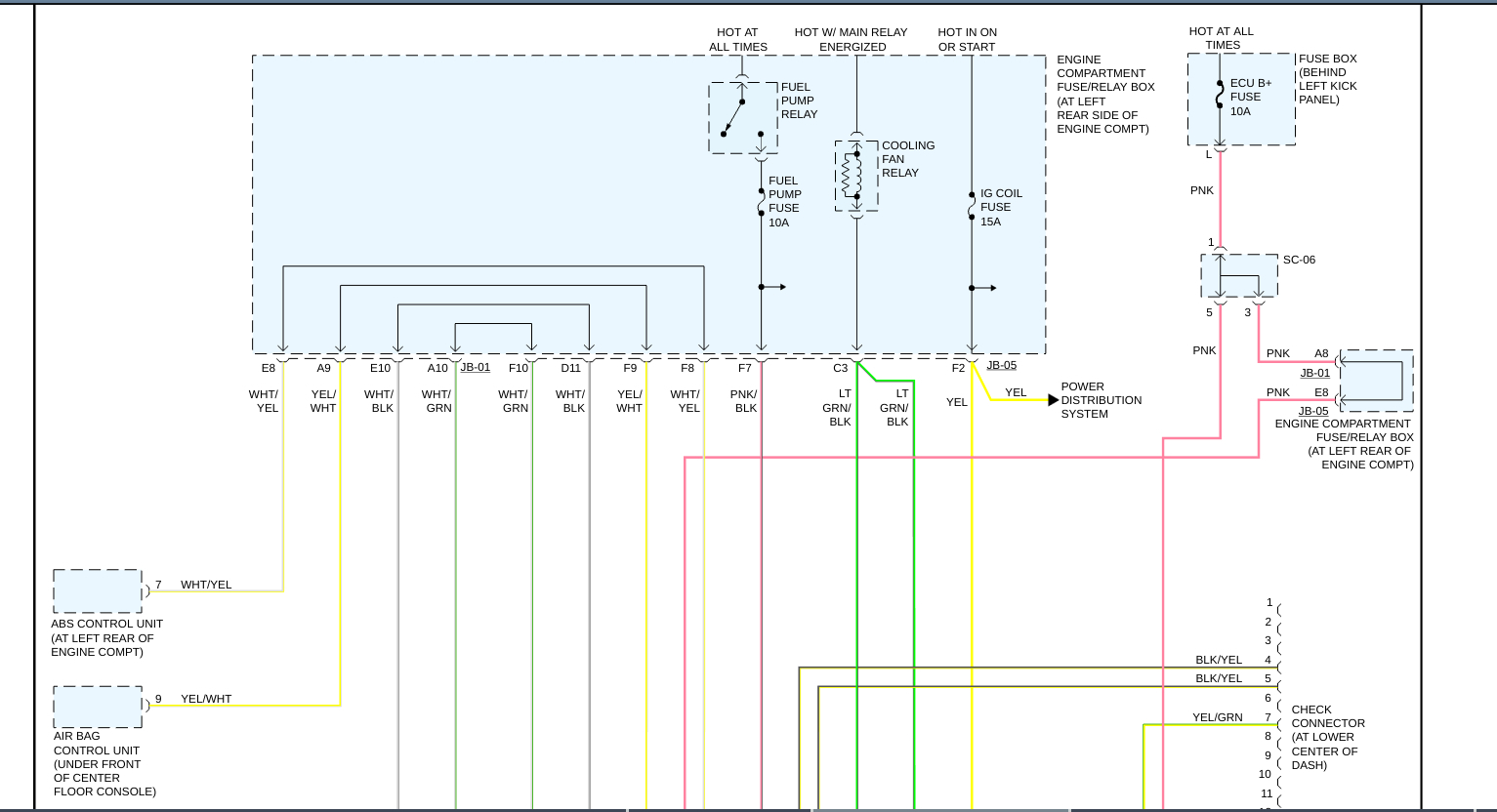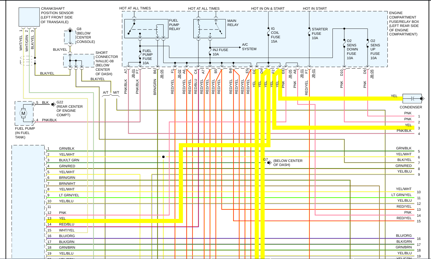 Okay, so the reason that your vehicles 15 Amp Ignition Fuse blew was because you have an intermittent short to ground in the circuit[s] that it is protecting. This happens because of Ohm's Law, the law that govern the electricity in your vehicle. Ohm's law states that one of the three properties is constant[Voltage-Automotive voltage is a constant[battery voltage]] and one of the other two goes down[Resistance-with a short to ground the resistance goes to zero as the currant/amperage has a direct path to the battery negative terminal], than the last property[Amperage/Current goes to the battery Amperage rating] must go up proportionally. The Amps exceed the fuses amperage rating, and "POP", the fuse blows, just as it was intended to, saving the component or an electrical fire, or both. In the diagrams down below I have included your vehicle's engine management wiring diagrams as well as a guide on how to find short to grounds in an automotive electrical circuit. You will need to use a Digital Multi-meter[DMM] to do this, so here is a link to a guide explaining how to do it, if needed, below: