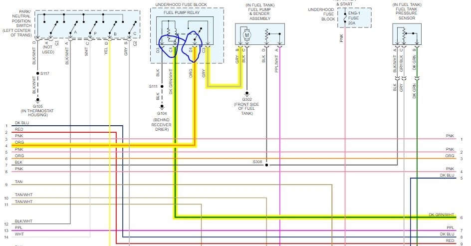 I drove the car, parked at home and when I tried to start, I could not. so I decided to do a little upgrades in the van (I have not done anything since I bought the van a year ago). so I replaced the spark plugs, wires. here is more info about my situation: something when I drive it will shutdown out nowhere. I lose power and everything goes dark, so I open the hood move my battery back and forward and I get power again, I go back to my van and crank, start without any problem. this has been going for about 3 months, well now I park the van and it will not start. I tested the ECM B fuse. and the fuel pump relay and they are both good. I can hear the pump when I turn the key on I confirmed there is 12 volts power and good ground. here is where I need help. I keep hearing about the computer needs a RPM signal. where this signal is coming from? also there are 4 wires at the pump, gray (power) black(ground) purple? and orange? what are the purple and orange for? I am looking for that darn rpm signal and I do not where to start. any help, tips for this? thank you very much.