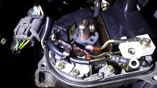 Pic 2 Show more wiring detail. Wire disconnected from coil + terminal. (distributor dismounted)