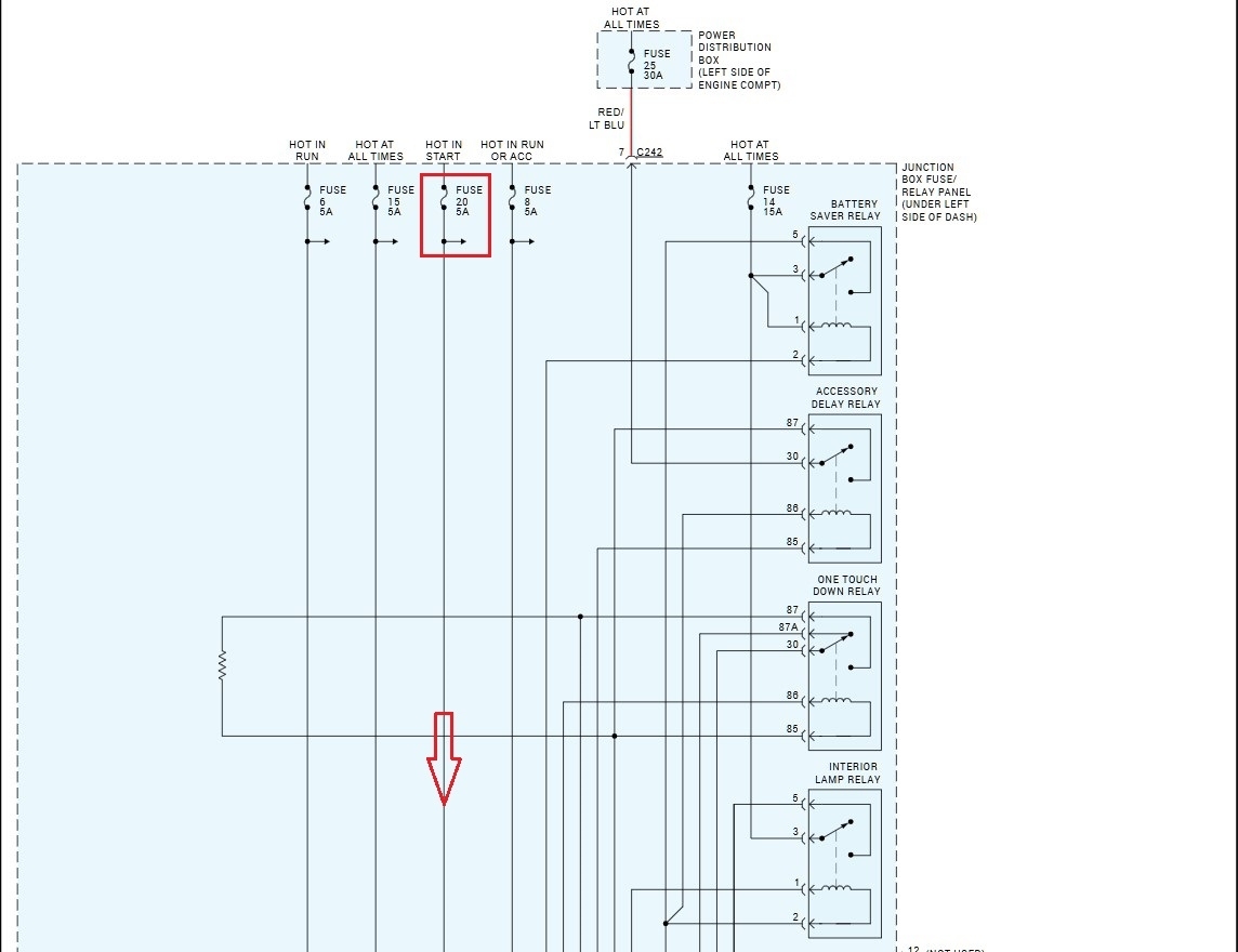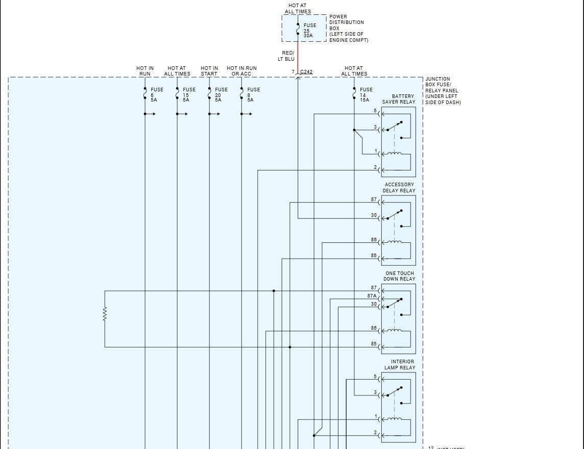 Diagram 6 is for the PCM power relay, if you take the relay out of its location, out of the 4 pins where the relay sits, 2 pins should have power at all times, and 1 pin should go directly to ground. So, if you use a multimeter to check for power here, just touch the pins lightly without pushing the meter leads into the pins, that will spread the pins and the relay will not make good contact afterwards.