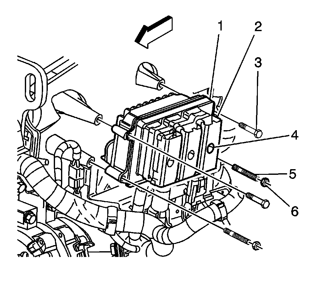 5. Slide the PCM (1) away from the intake manifold past the mounting studs (5) and remove PCM from the vehicle.