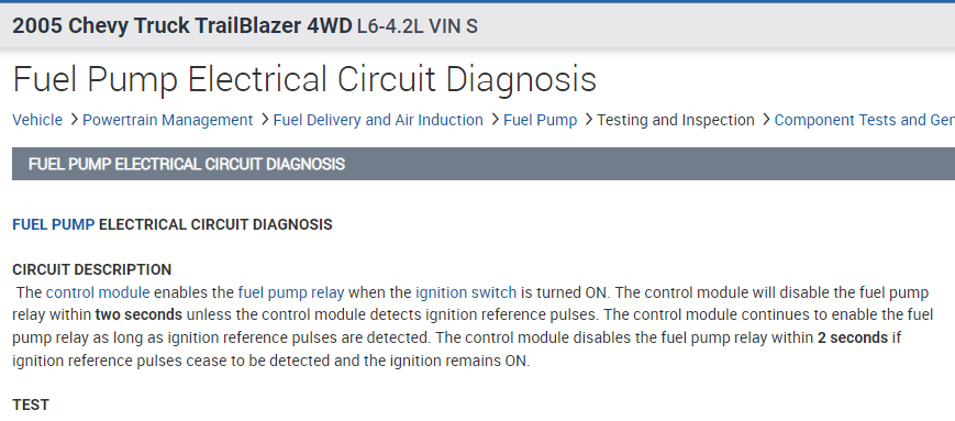 2005 Chevy Truck TrailBlazer 4WD L6-4.2L VIN S