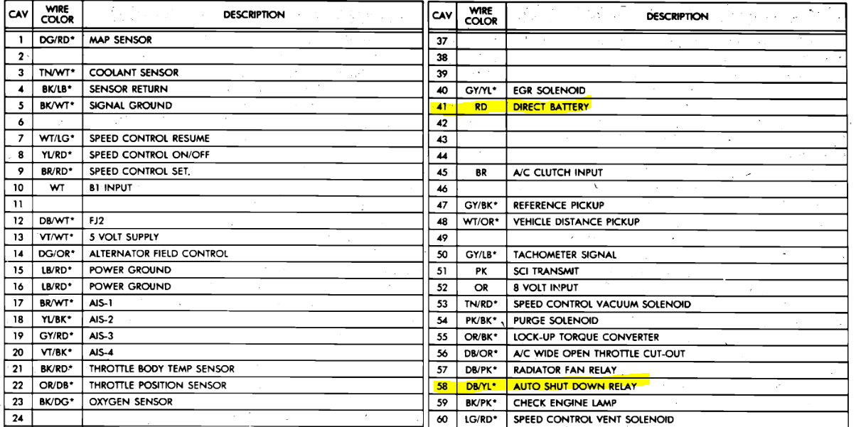 So, I tested the pins and there's power in 41but pin 58 comes on when I ground it with test light.