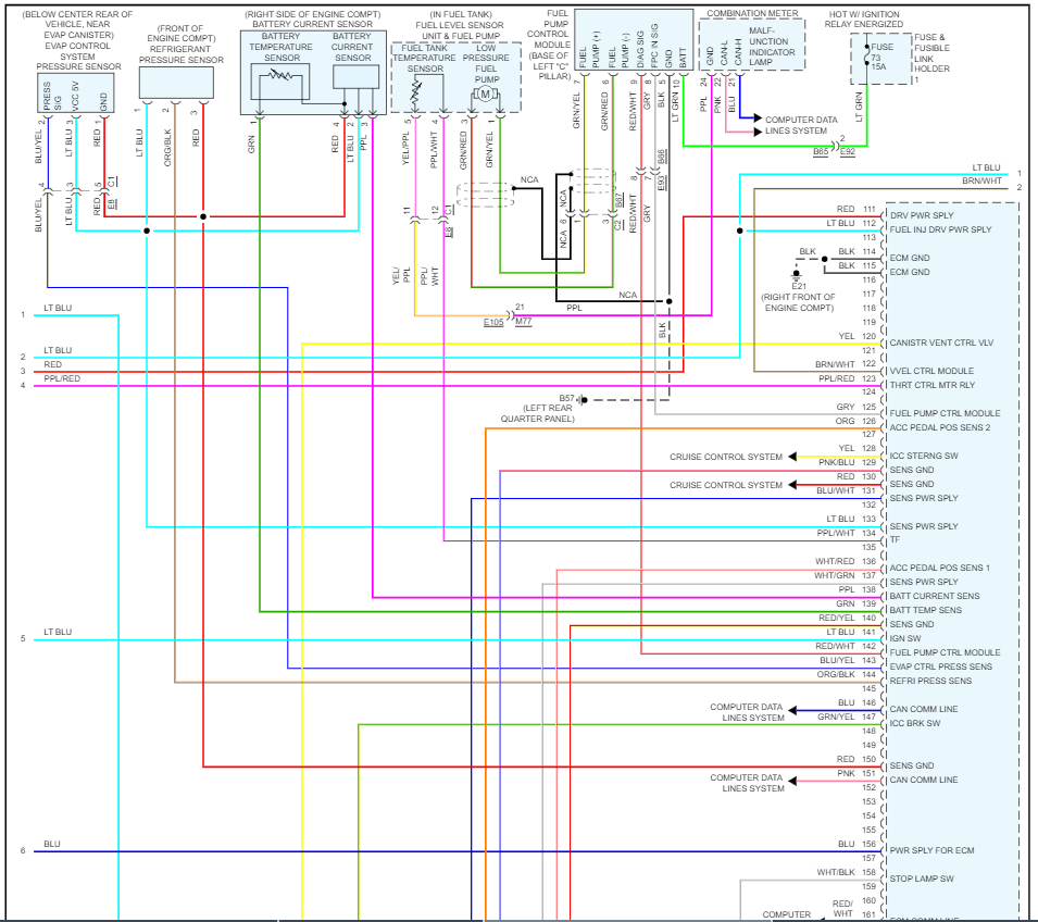 I'm starting to consider trying a different ECM at this point. The only lead I have going for me is that my scan tool displays the fuel level at 100%, but the car reads correctly at 1/4 tank. For sure the tank is only 1/4 full because it was almost ran out of gas in the beginning, apparently. There are no codes in the ECM however I have communication with it. I did a simple parasitic draw test on the ground side terminal and the initial draw goes from 6mA to 1.5mA, just after the leads are connected.