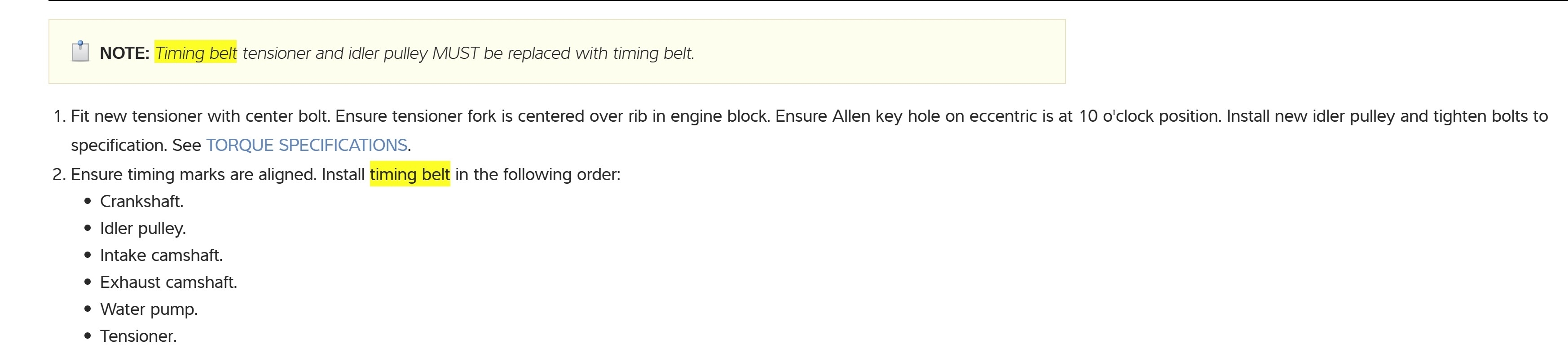 I am adding the installation procedure for the timing belt as well as the torque specs and a couple of other illustrations that I think will be helpful for you.