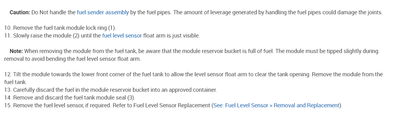 If the fuses are good and there are no codes here is how to change the fuel pump assembly out. Check out the images (below). Let us know what happens and please upload pictures or videos of the problem so we can see what's going on.