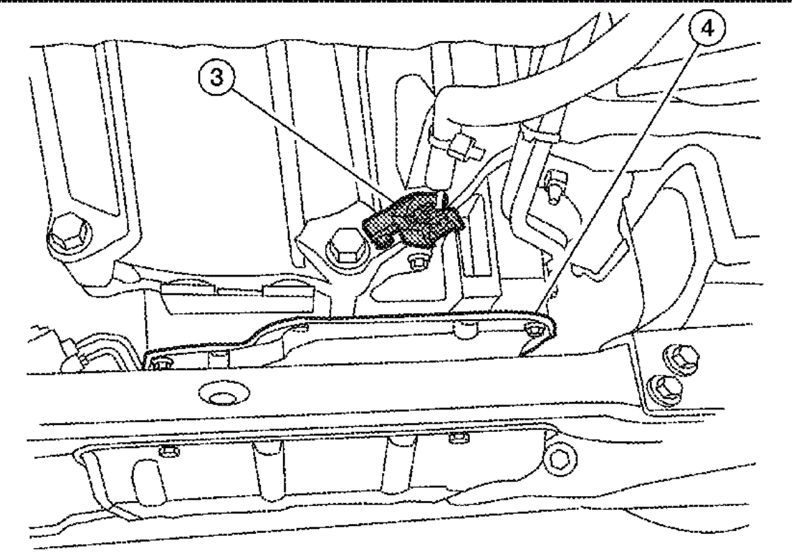 Now, if I recall, this is a tight one to access (4wd). Take your time. You will need to remove the skid plates under the vehicle to access this. Also, the picture is looking up at the engine from under the vehicle and number 3 is pointing at the sensor.