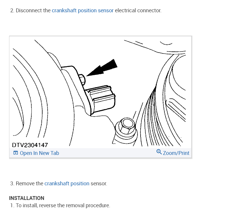 The crankshaft position sensor is down in front of the engine near the front balancer. Below is the location and the replacement instructions in the diagrams. Check out the diagrams (below). Please let us know if you need anything else to get the problem fixed.