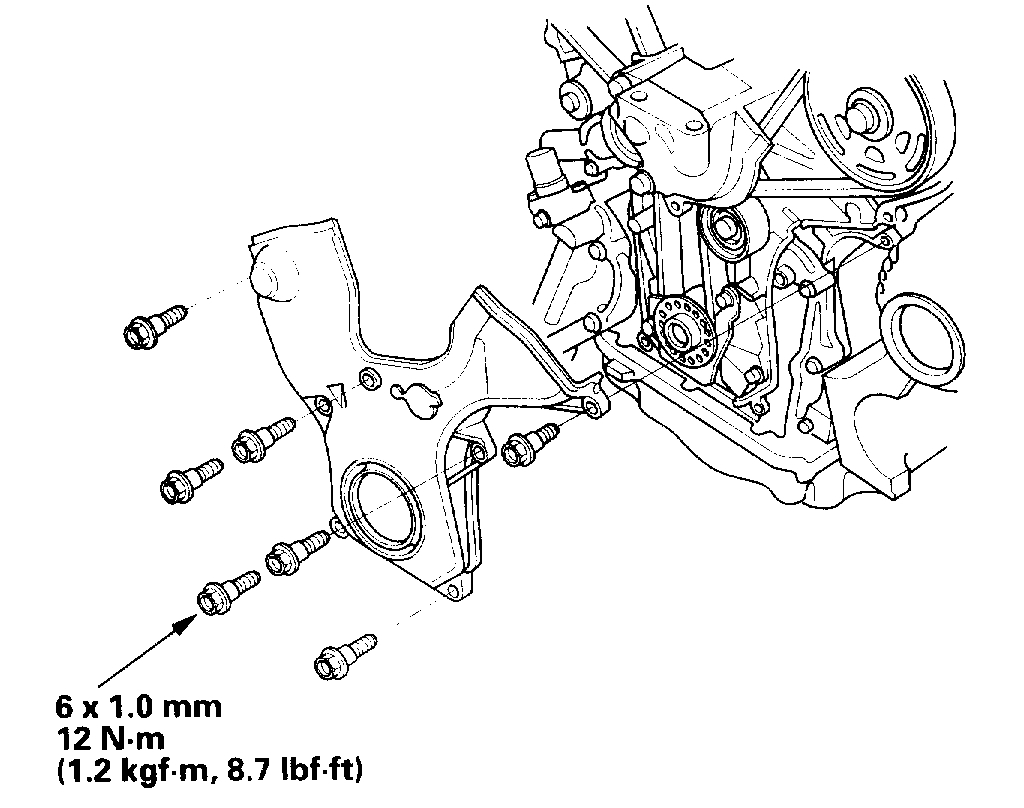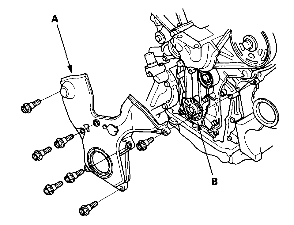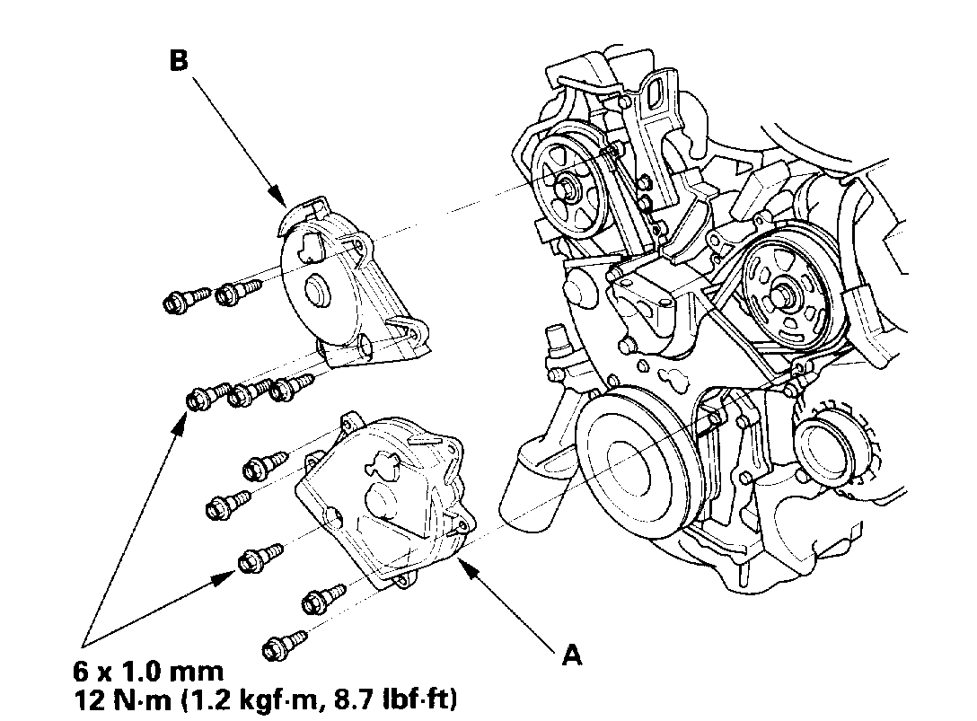 12. Remove the timing belt guide plate (B).