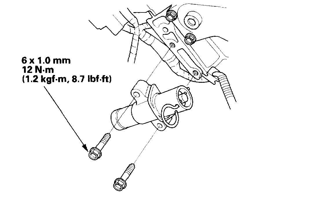 10. Screw the battery clamp bolt in as shown to hold the timing belt adjuster. Tighten it by hand; do not use a wrench.