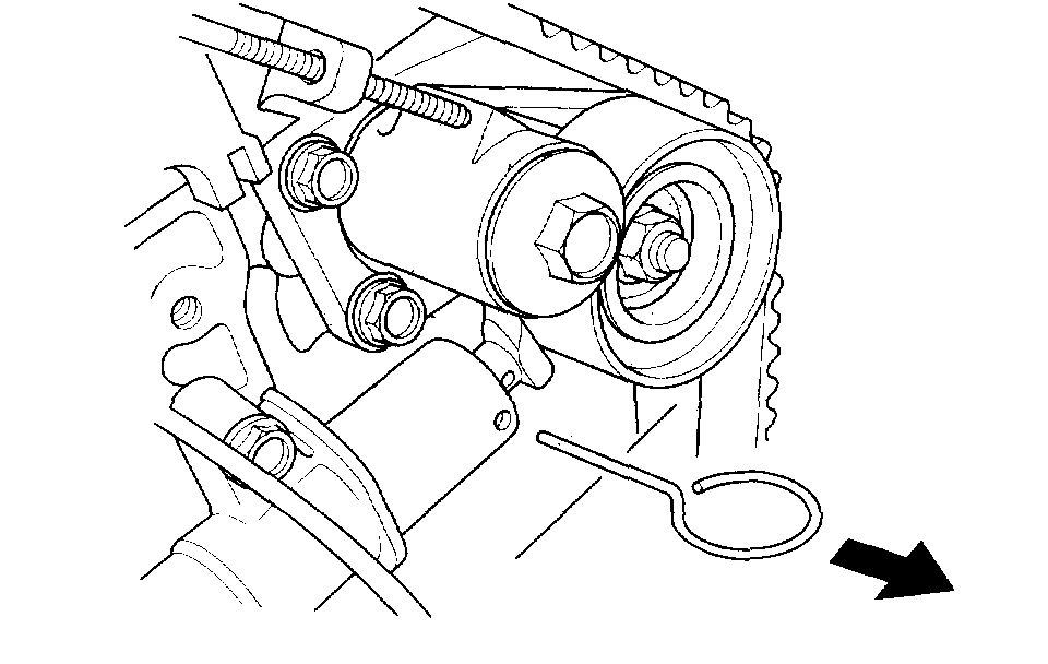 14. Remove the pin from the auto-tensioner.